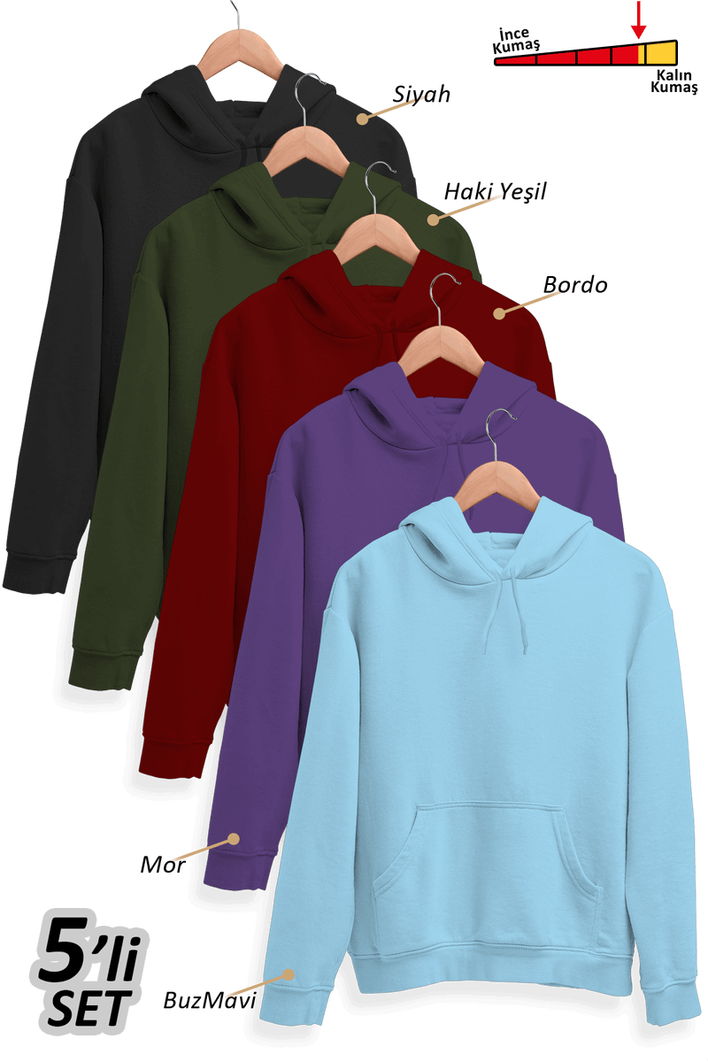 Klasik tonları modern bir tarzla buluşturan 5’li Kışlık Unisex Kapşonlu Sweatshirt Seti, hem konforu hem şıklığı ön planda tutanlar için tasarlandı.