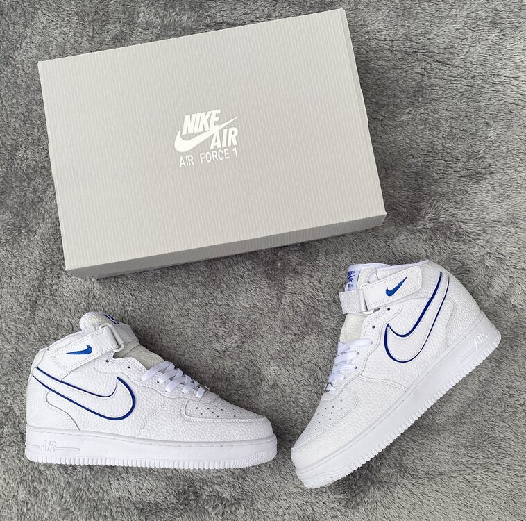 Nike Air Force High (White & Blue), klasik Air Force siluetini modern detaylarla buluşturan efsane bir modeldir. Bilekli (high-top) tasarımı sayesinde ekstra destek sağlarken, beyaz zemin üzerine mavi detaylarıyla dikkat çekici ve sade bir görünüm sunar.