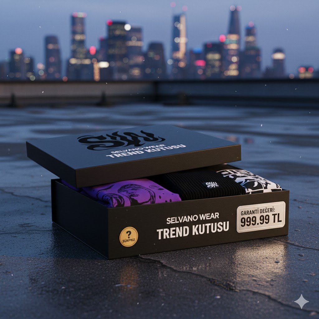 Başlangıç seviyesinin ötesine geçmek isteyen, koleksiyonuna ciddi parçalar katmayı hedefleyen streetwear tutkunları için hazırlandı. SELVANO WEAR Trend Kutusu (The Hype Box), beklentileri aşan değeri ve sürprizi bir araya getiriyor.